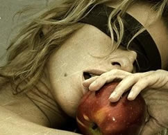 Op dat moment kruipt er een slanke, sexy boa constrictor uit het gebladerte. Verleidelijk reikt hij een rode appel aan jouw Eva. Ze neemt de appel aan in haar rechterhand en met haar linkerarm omhelst ze je en drukt zich stevig tegen je aan. Je zwellende erectie klopt tegen haar buik. Eva bijt in de appel en kust je. Ze zuigt en likt en bijt en verdeelt de appel tussen haar en jouw mond. Je penetreert haar terwijl het sap van de appel over haar borsten en jouw lichaam loopt. Jullie worden opgewonden en bijten elkaar als liefkozende wolven. Eva schreeuwt; 'Oh mijn God, ik kom!' Op dat moment verschijnt God als een helder wit licht dat schijnt doorheen je derde oog. In je eenwording ben je het kind van de Heilige Geest geworden dat tegelijkertijd vader en moeder is."